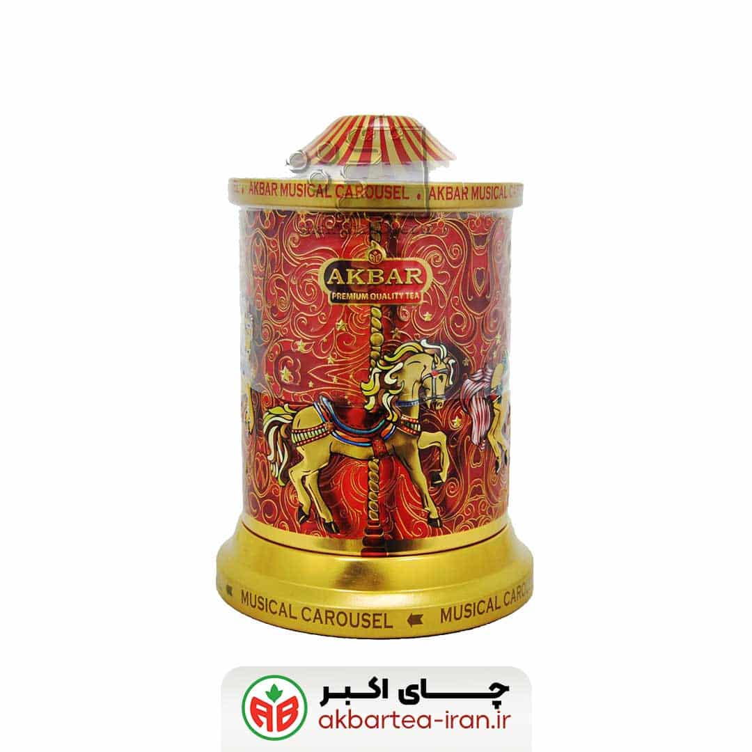 این چای از برند اکبر و تولید کشور سریلانکا به سفارش انگلستان است. سریلانکا معتبرترین مرکز تولید چای در دنیاست. شامل چای سیاه با برگ گل رز و جاسمین است. به خاطر وجود جاسمین طعم لطیفی دارد و مثل چای سیاه طعم گس ندارد. چای چرخ فلک موزیکال اکبر، چای سیاه سیلان کلاسیک مخلوط با چای سبز و گلاب (چای برگ) و ترکیبی تصفیه شده ایده آل برای موارد خاص یا لذت بردن از یک چای خوب در هر زمان.