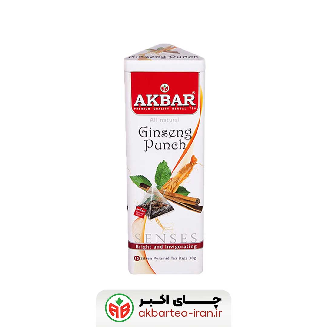 دمنوش جینسینگ اکبر از جنسینگ بسیار مرغوب تهیه میشود و بسیار مقوی و نیروبخش است. دمنوش جینسینگ اکبر مطمئناً حواس شما را بیدار میکند و روح شما را تغذیه می کند.